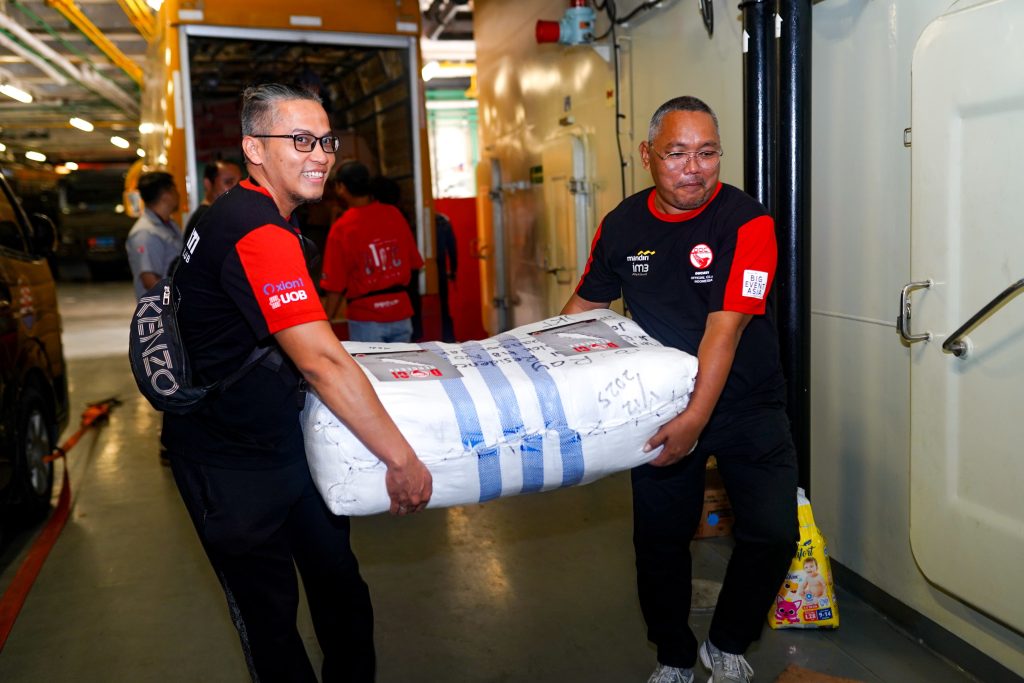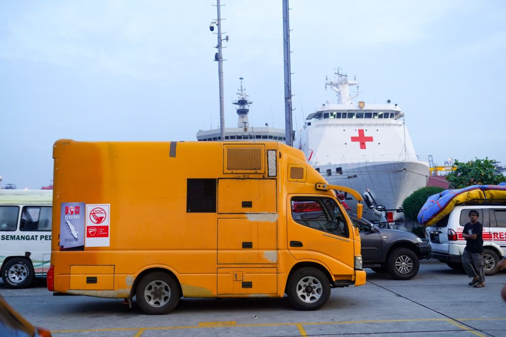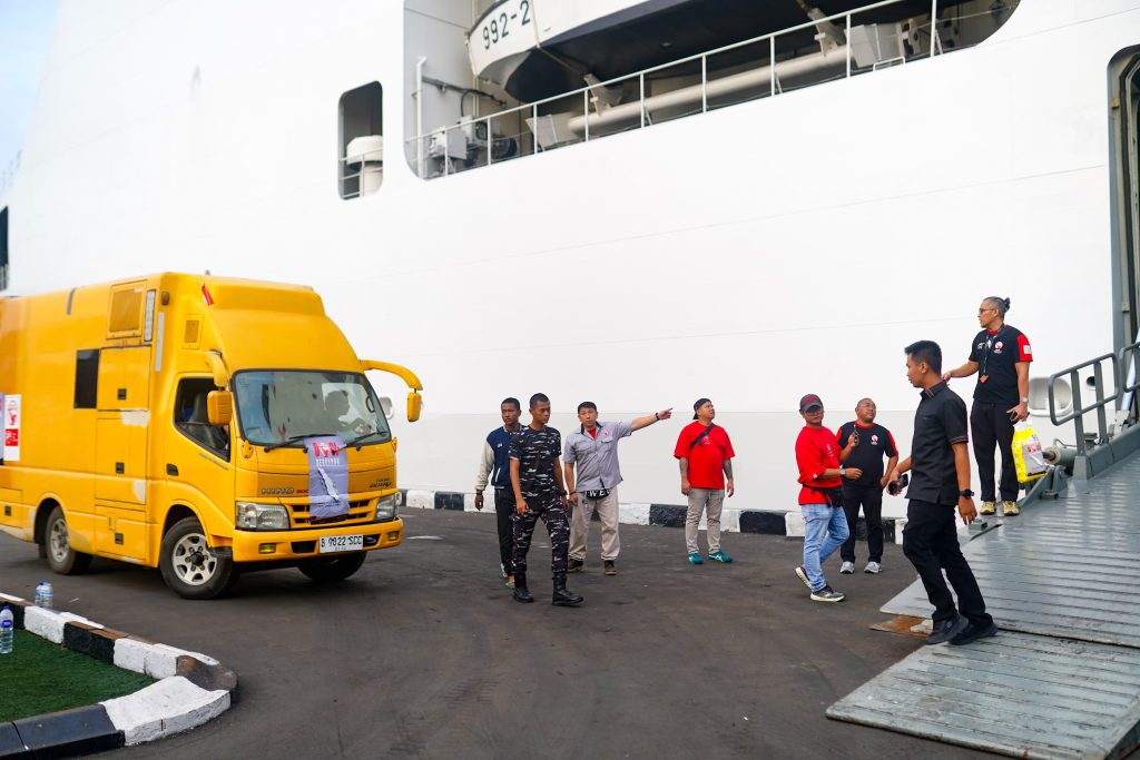 Bantuan didistribusikan melalui kapal Rumah Sakit Apung, KRI dr. Radjiman Wedyodiningrat, kapal yang kerap menjadi jangkar harapan bagi warga di wilayah bencana.